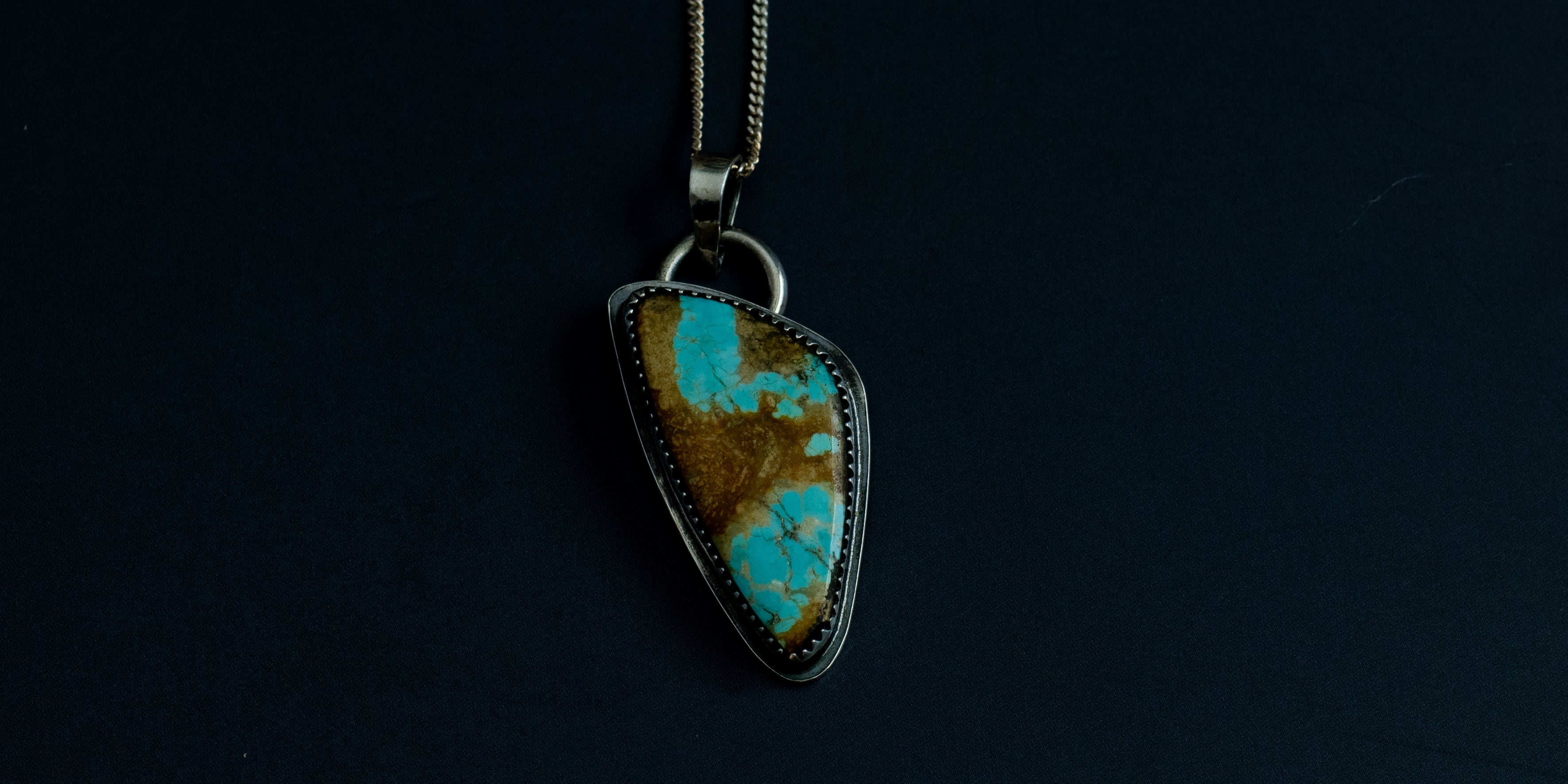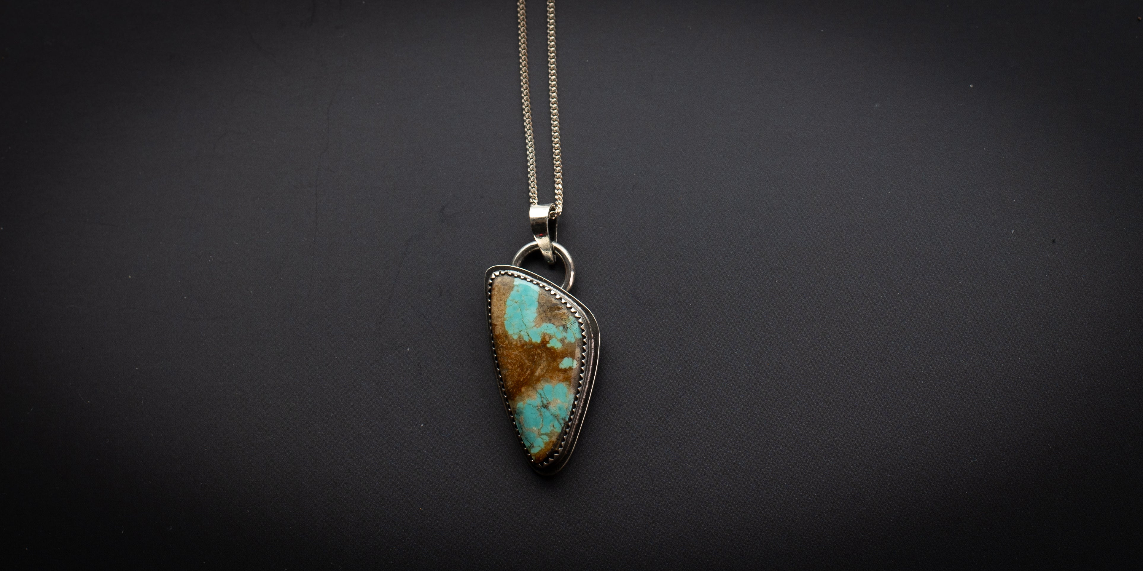 #8 turquoise set in .925 sterling silver and hanging on an 18" sterling silver curb chain
